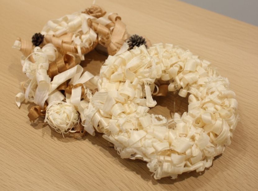 木工のかんなくずを使い、木の温かみのある世界に一つだけのオリジナル「リース」づくりを体験できます。